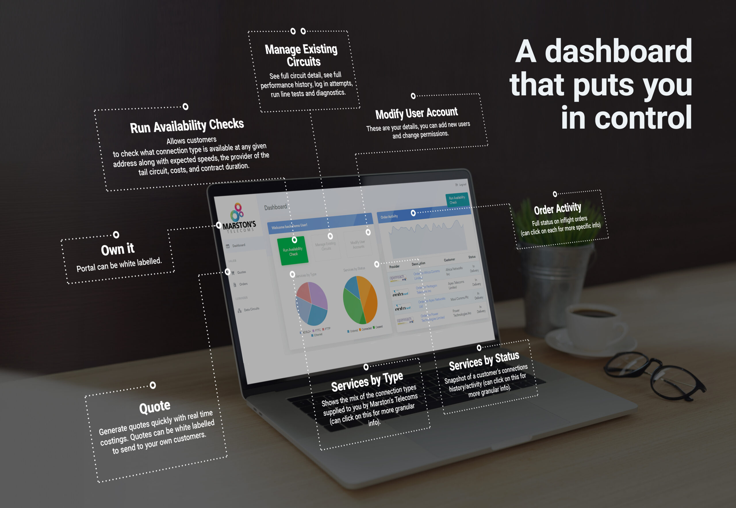 But for those that like to be a bit more self–sufficient, we will shortly be providing a self-service portal so partners can independently and efficiently manage their Marston’s Telecoms estate.